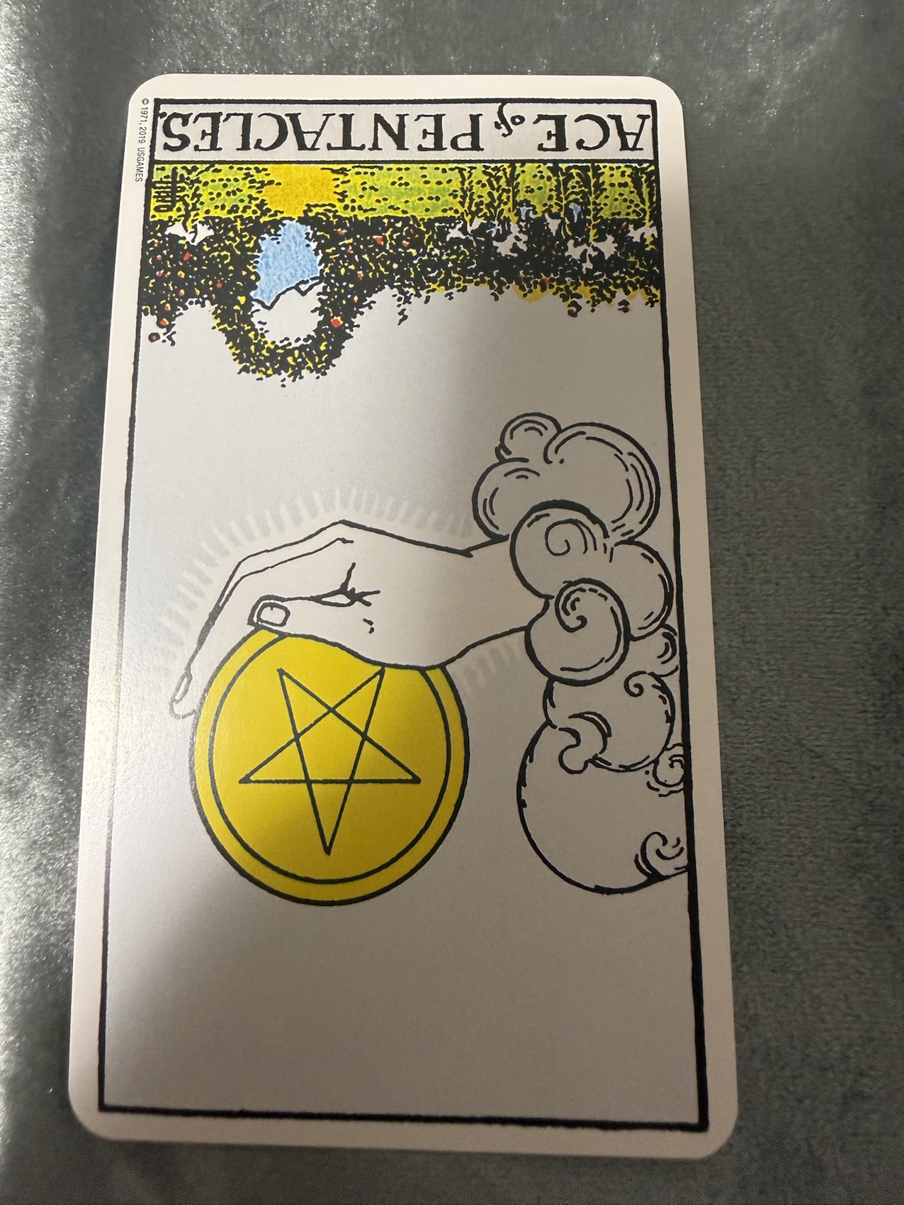 そんな中で引いたカードが、ペンタクルのエース逆位置です。